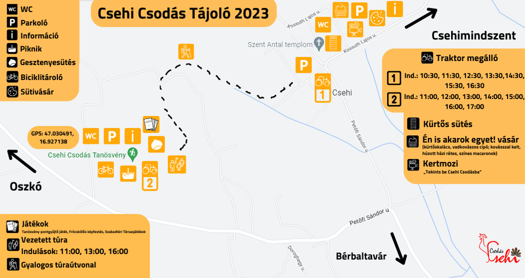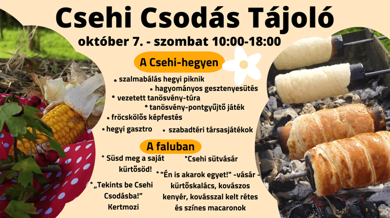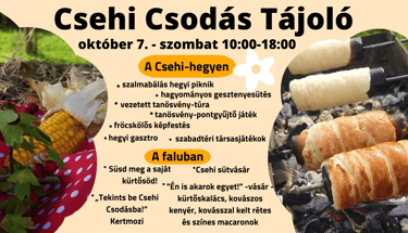 A rendezvény Csehiben két helyszínen: a Csehi Csodás Tanösvényen és a Csehi Csodás Vásártér területén!