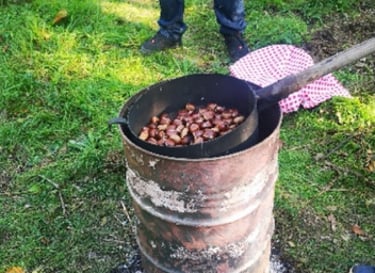 Jó hegyi levegő, őszi színek, roskadozó gesztenyefák, vaskályha, ropogó tűz, forró vasedény, kormosan hulló gesztenyehéj, édes sült gesztenyeillat és a finom, ízletes, sült gesztenye…
