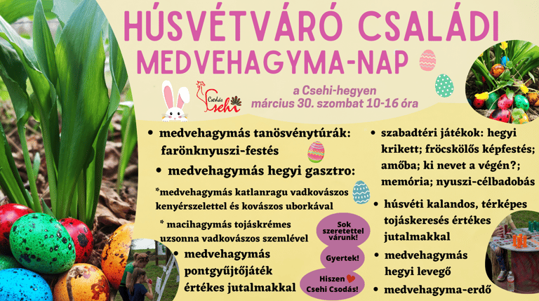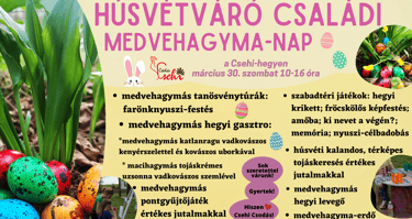 medvehegymás tanösvény-pontgyűjtő játék 10:00-16:00 óráig: keresd meg az elrejtett pontokat, válaszolj a kérdésekre; közben ismerd meg a Csehi-hegy növény- és állatvilágát! és ha ügyes vagy, csont nélkül megoldod, válassz egy hűtőmágnest vagy kéken fogó tollat, esetleg egy finom macaront!