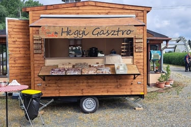 Saját büfékocsinkkal és árusító faházunkkal a hegyi programjainkon és egyéb rendezvényeken biztosítjuk a nagyobb részt saját, ám mindenképpen hegyháti termelői alapanyagokból készült rétesre, kürtőskalácsra, kovászos kenyérre, macaronra éhes; házi szörpre, hegyi pálinkára és borra szomjas vendégeinket.