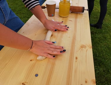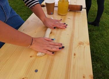 A helyi termelői alapanyagokból készült finom kelt tésztát és az ízeket mi adjuk, Te pedig süsd meg az izzó parázson a kedvenc formájú diós, gesztenyés, mákos, almás ízű kürtőskalácsod!