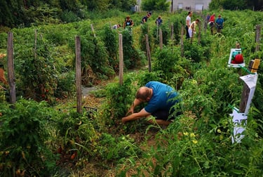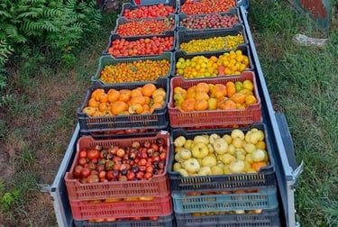 A kertbe kb. 2000-2500 különleges fajtájú paradicsompalánta kerül ki. Ezek között a mindig keresett piros befőzőkön kívül megtalálhatók a lila, fekete, sárga, narancssárga, citrom, fehér, zöld, csíkos színű bogyók kicsi, nagy, óriás, gömbölyű, hosszúkás formái. A kert környezete pont kedvező a fejlődésükhöz.